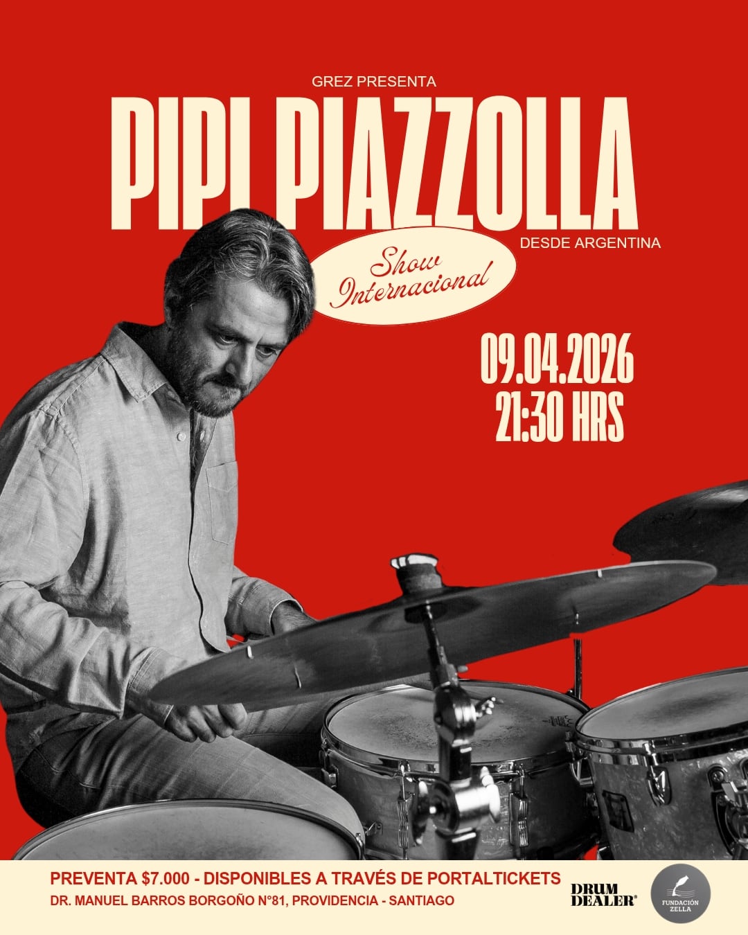 Fundación Zella en el contexto de los proyectos a realizar este año 2026 y con la colaboración de Grez club y DrumDealer, llega Pipi Daniel Piazzola a Chile , quien estará participando de distintos eventos académicos y de espectáculo.