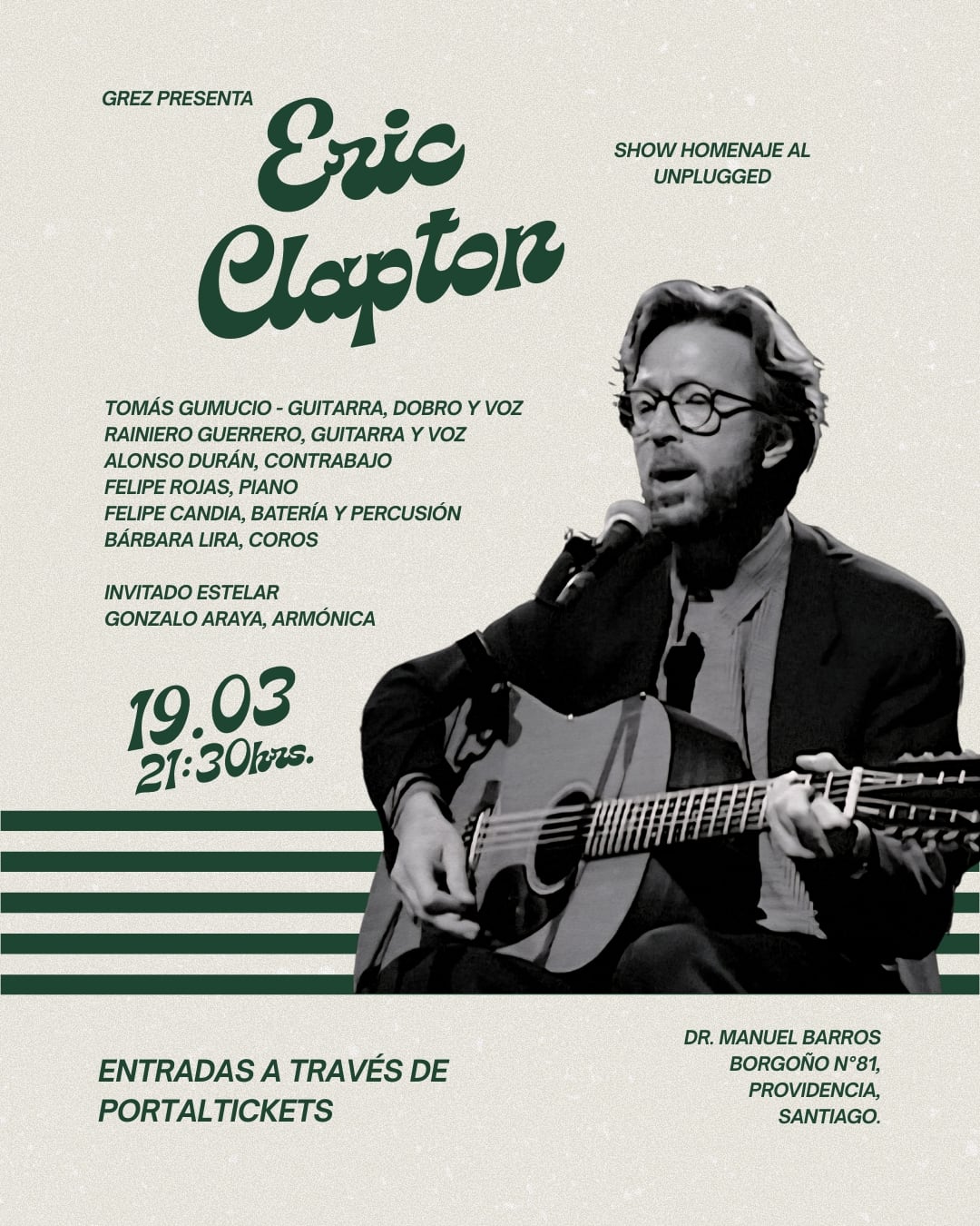 El show busca recrear el mítico concierto del unplugged de Eric Clapton, respetando la estética completamente acústica, el repertorio y el espíritu íntimo.