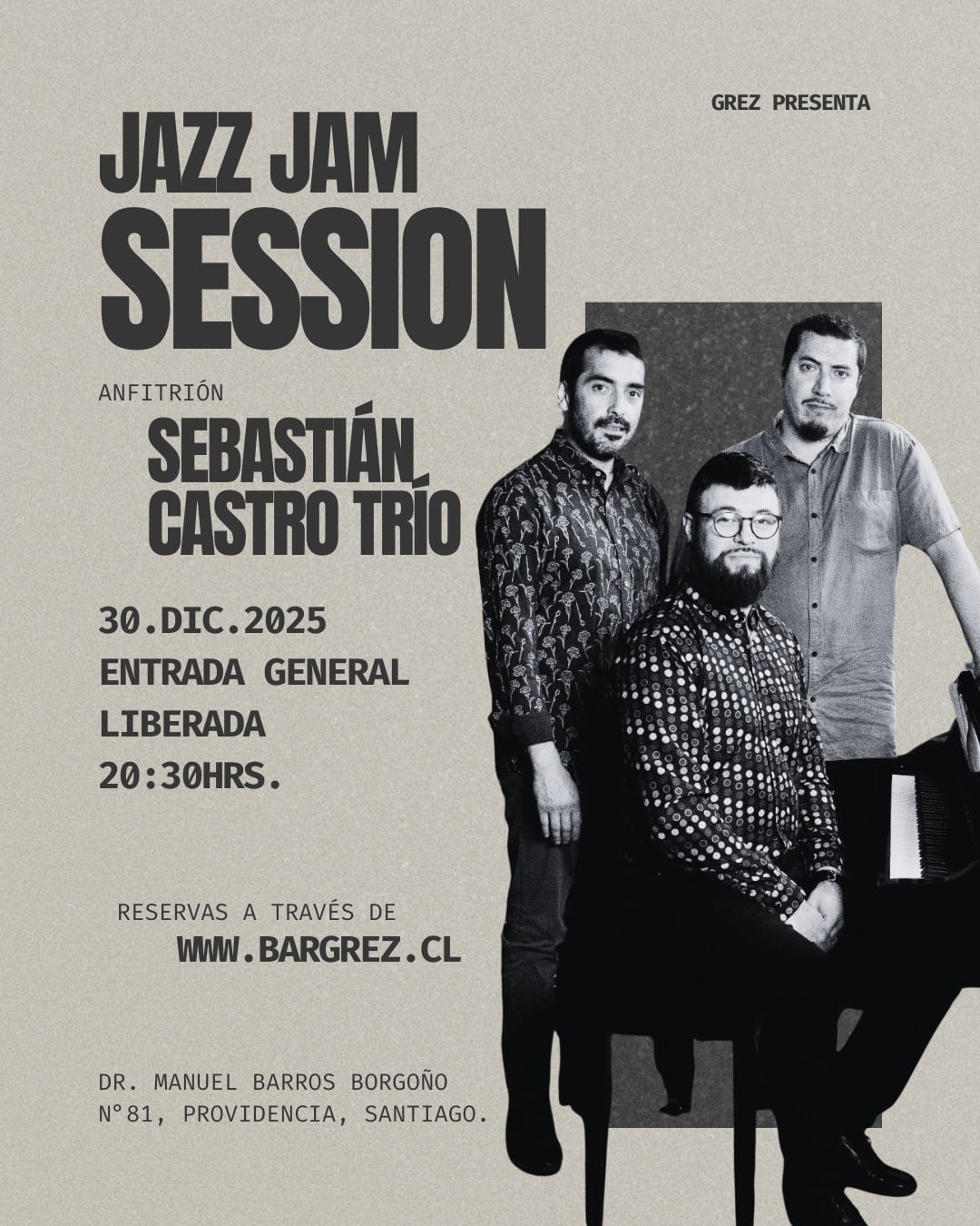 Bar Grez Dr. Manuel Barros Borgoño 81, Santiago, ChileAnfitrión: Sebastián Castro Trío