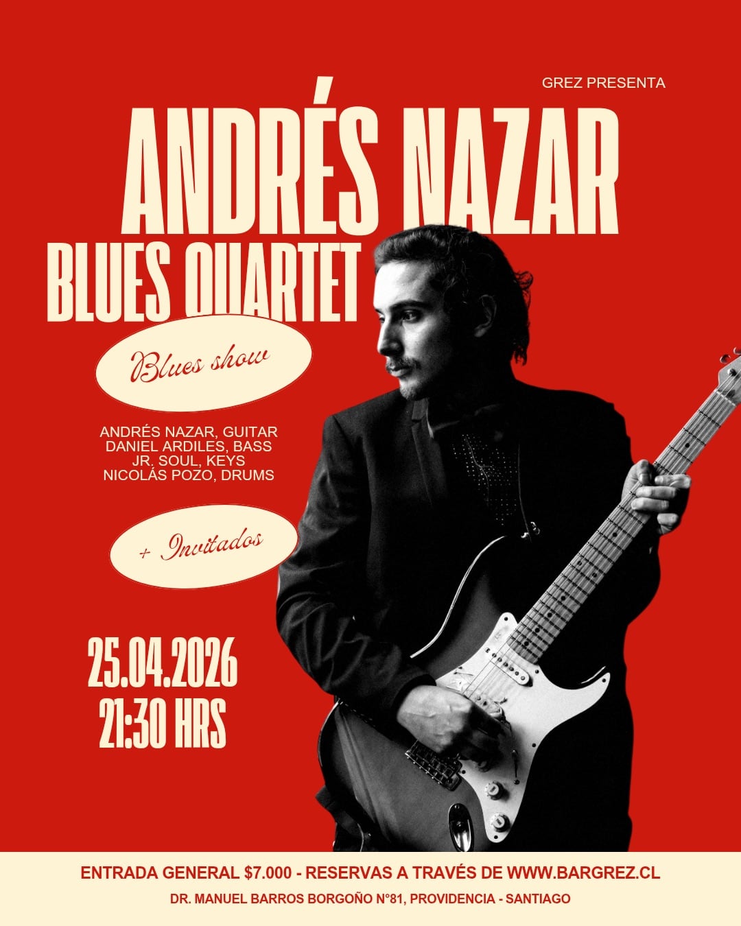 ANDRÉS NAZAR, GUITAR DANIEL ARDILES, BASS JR SOUL, KEYS NICOLAS POZO, DRUMS + Invitados